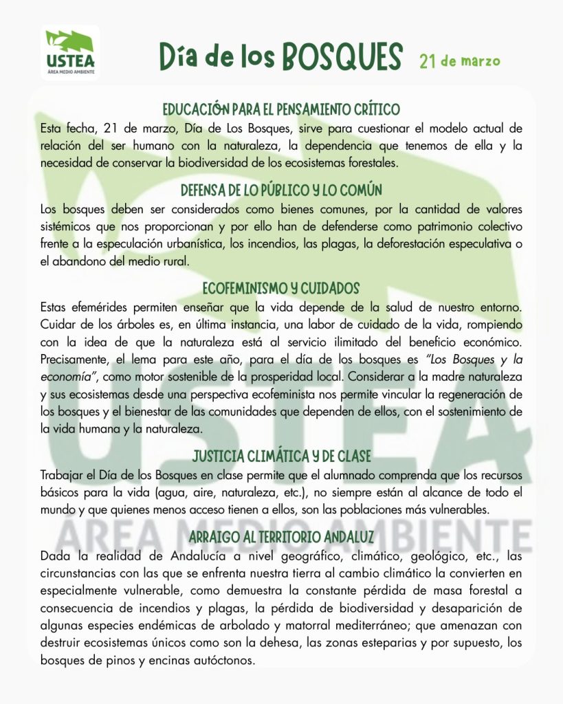Esta fecha, 21 de marzo, Día de Los Bosques, sirve para cuestionar el modelo actual de