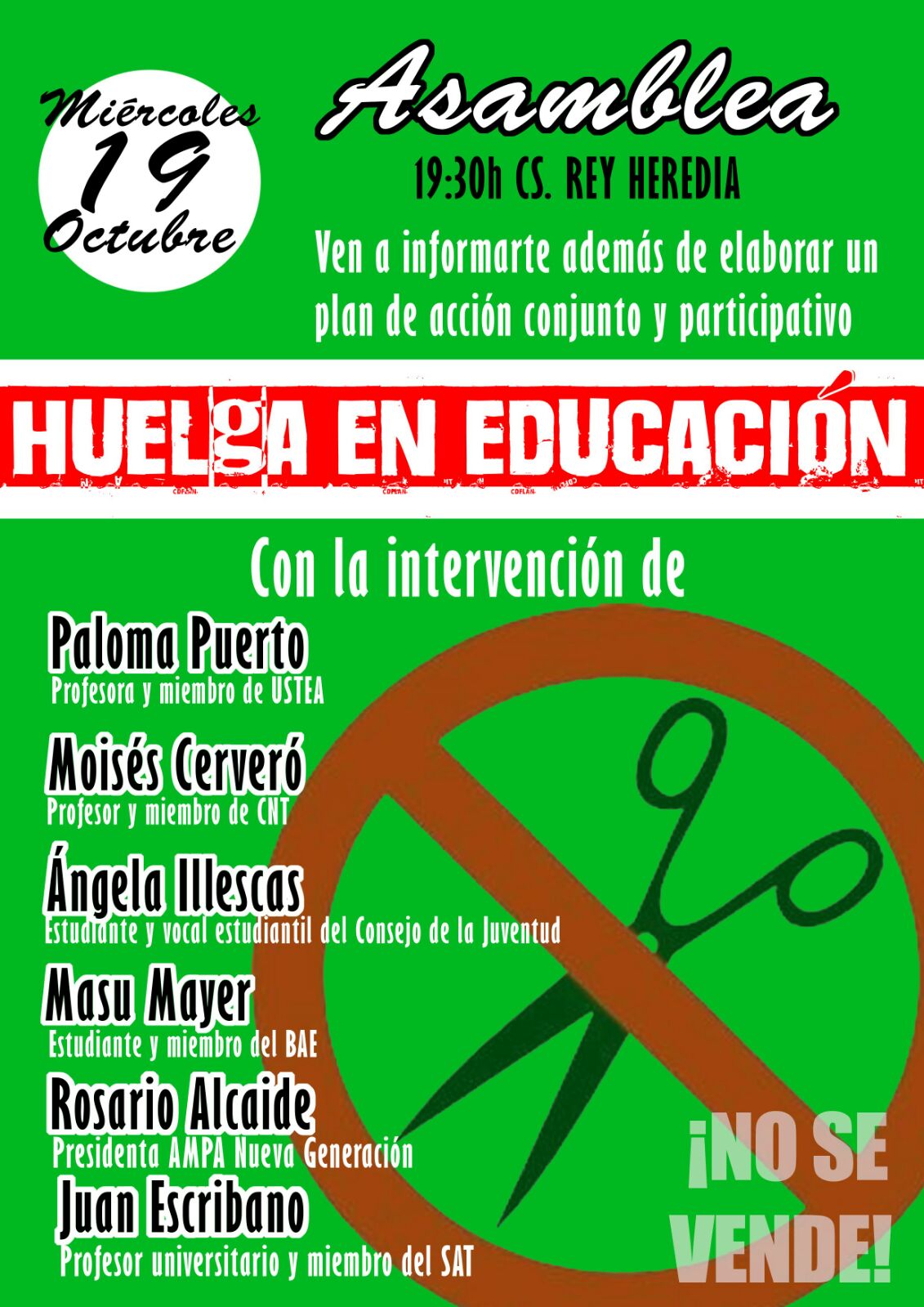 El pasado miércoles 19 de octubre se realizó una asamblea informativa para preparar la jornada de huelga convocada por USTEA para el día 26 de octubre.