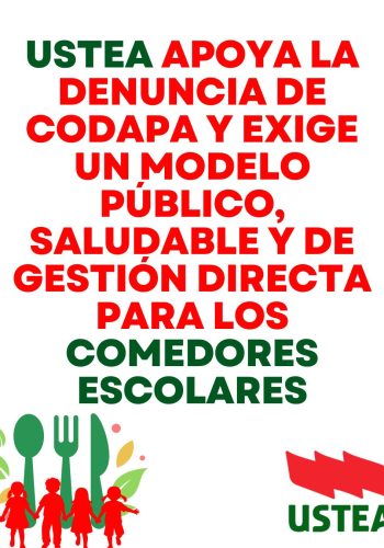 USTEA y Justicia Alimentaria apoyan la denuncia de CODAPA y exigen un modelo público, saludable y de gestión directa para los comedores escolares.